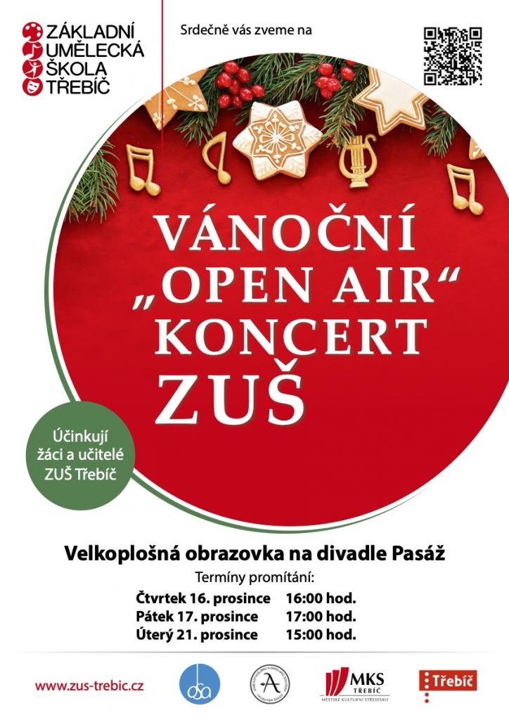 ZUŠ Třebíč promítá koncert žáků a učitelů ZUŠ z epidemických důvodů na velkoplošné obrazovce u vstupu do kina Pasáž.